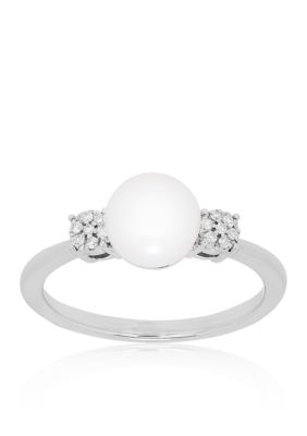 Belk Co Freshwater Pearl And Diamond Ring In Sterling Silver Belk
