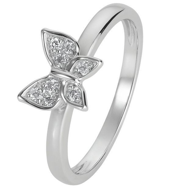 Buy Revere Sterling Silver Cubic Zirconia Butterfly Ring L
