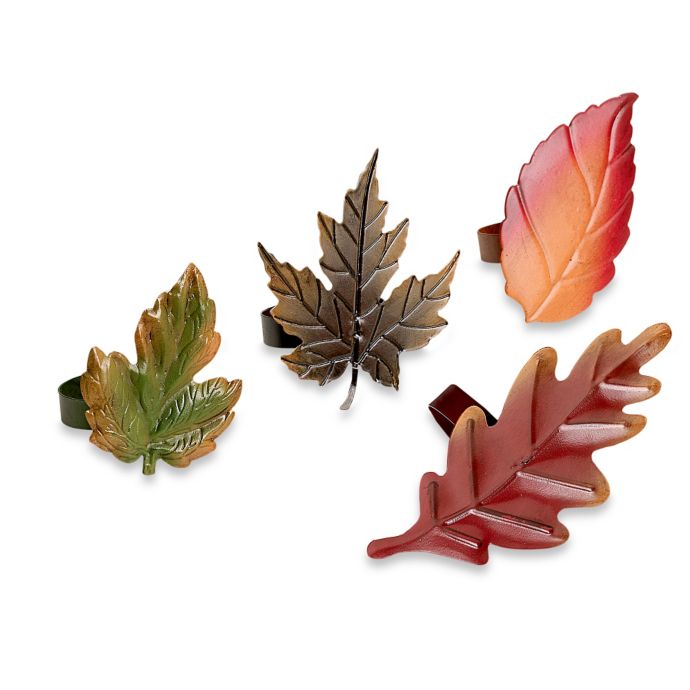 Autumn Shapes Metal Leaf Napkin Rings Set Of 4 Bed Bath Beyond