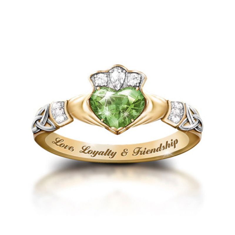Claddagh Ring Ladies 10k Gold Cz And Green Agate Irish Ring At