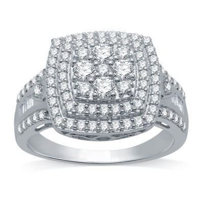 Womens 1 Ct T W Genuine Diamond Sterling Silver Cocktail Ring